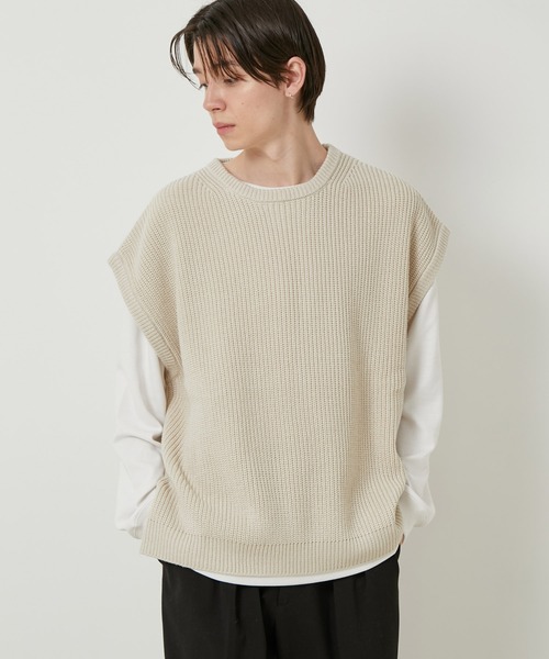 【ビッグシルエット】ルーズニットベスト 【素材】 7Gの程よい肉感の編み地を使用しています。 畔編みになので少し膨らみのあるタッチ感が特徴的です。 【シルエット・デザイン】 着丈はそこまで長くなく身幅が大きめのワイドシルエットです。 オーバーサイズでトレンド感のあるシルエットなので、 シンプルな畔編みで幅広く着こなせるデザインに仕上げました。 ゆったりめのショルダーデザインでリラックスした着心地です。 【カラー】 ブラック、グレー、グレージュのスタンダードで着回しの効く3色展開です。 【スタイリングポイント】 シルエットが大きいので同じく大きめのシャツやインナーと合わせたコーディネートがオススメです。 アウターはオーバーサイズのコートやダウンジャケットなどのあわせと相性が良いです。 【ディテール】 程よい肉感でシーズン通して着やすいデザイン。 裏地:なし 光沢感:なし 透け感:なし ポケット:なし 伸縮性:有り 生地の厚さ:普通 その他:ワイドシルエット MEN モデル身長 177cm 着用サイズ L WOMEN モデル身長 164cm 着用サイズ L