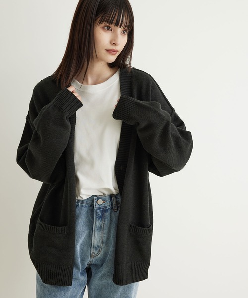 【ビッグシルエット】ルーズニットボタンカーディガン 【素材】 7Gの程よい肉感の編み地を使用しています。 天竺編みで着心地の良い素材です。 【シルエット・デザイン】 全体的に大きめのサイズ感でリラックスした着心地が特徴。 オーバーサイズでトレンド感のあるシルエットで、 着用した時に落ち感のあるデザインに仕上げています。 ユニセックスで着用頂けるデザインです。 【カラー】 ブラック、グレー、グレージュのスタンダードで着回しの効く3色展開です。 【スタイリングポイント】 ビッグシルエットのカットソーや、スウェットの上からの着用などもオススメです。 袖にボリュームがあるのでオーバーサイズのコートなどと相性が良いです。 【ディテール】 程よい肉感でシーズン通して着やすいデザイン。 裏地:なし 光沢感:なし 透け感:なし ポケット:あり 伸縮性:有り 生地の厚さ:普通 その他:ビッグシルエット MEN モデル身長 177cm 着用サイズ L WOMEN モデル身長 164cm 着用サイズ L