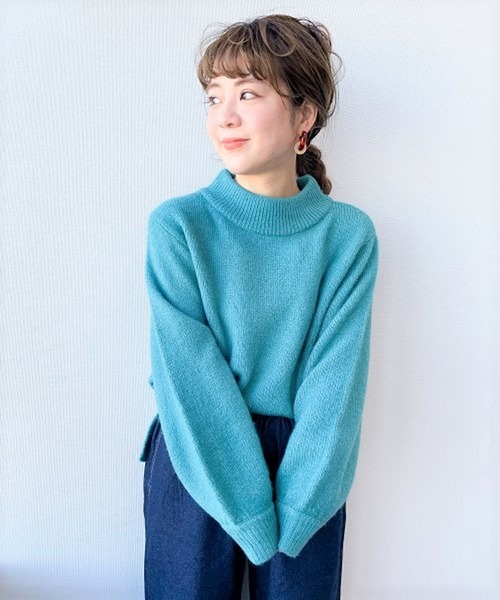 WEBでしか買えない限定アイテム! ふんわりもっちりとした質感が心地よいニットプルオーバー。 ハイネックと丸みのあるお袖が今年らしいシルエットに。 ゆったりとした着心地なのでボトムはもちろん、ワンピースの上からレイヤードもオススメ! お家でのお洗濯も可能なのも嬉しいポイントです。