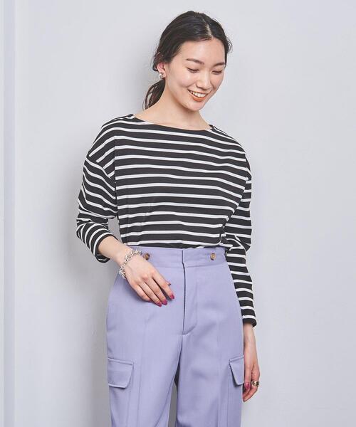 顔回りがすっきりと見えるボートネックのカットソー。 ■デザイン ゆったりとしたシルエットと太すぎず細すぎないピッチのボーダーは落ち着いた印象。 ホワイトカラーはボーダーではなくソリッドカラーで、ほか2色は定番のボーダーカラーリング。 ■素材 糸の段階でガス焼き工程を施した毛羽の少ない素材は光沢と発色の良さが特徴。 ■コーディネート 着丈は長すぎず、パンツともスカートとも好相性。 ベーシックで使い勝手が良く、一枚着としてもインナーとしても重宝するアイテムです。 ============================ 裏地:なし 透け感:ややあり 生地の伸び:ややあり 光沢感:なし ケア方法:手洗い可・ドライクリーニング ============================ 【注意事項】 ※商品を使用前に、タグ等に記載されている「取り扱い上の注意書き」、「洗濯表示」を必ずご確認ください。 ※商品画像は、光の当たり具合やパソコンなどの閲覧環境により、実際の色味と異なって見える場合がございます。予めご了承ください。 ※商品の色味の目安は、商品単体の画像をご参照ください。 店舗へお問い合わせの際は、全国のUNITED ARROWS各店舗まで下記の品名/品番をお申し付け下さい。 品名:〇UWSC C BORDER BOAT/NC 品番:15122620877