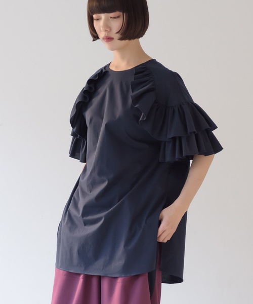 【La SRIC/ラスリック】60Sチューインローン前身ヨーク部分からの大胆な段フリル袖が印象的なデザインブラウス。綿100%ながら滑らかできれいめなローン生地は扱いやすくシーズンレスに着用いただけます。程よい丈感はコーディネートの幅を広げ、カジュアルベストを羽織っていただいてフリルデザインを引き立たせるMIXコーデもおすすめです。サイズ(38) 着丈77㎝ 身幅56㎝ 裄丈49.8㎝【La SRIC】Japan Madeを中心に上質な素材と細部の仕様、縫製から感じられる着心地にこだわった完成度の高いパターン、少しエッジーなデザインを展開する東京ブランド。【INFORMATION 】▼お気に入り登録▼『♡』マークを押してお気に入り登録をすると、割引クーポンの発行/セール開催の通知/タイムセール通知/人気商品の再入荷通知など、miniyu取扱いブランドのお得な情報を受け取ることができます。 気になった商品はどんどん『♡』マークを押して、登録してくださいね♪