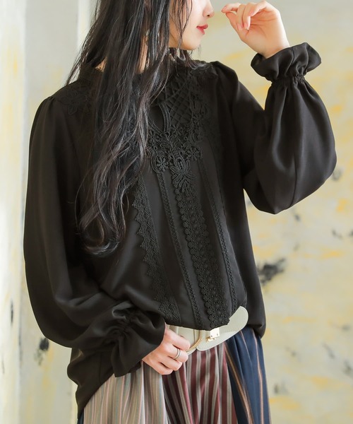 『贅沢レースでいつもよりお洒落な私に。』 ヴィンテージ感のあるレースをたっぷり施して、クラシカルな雰囲気漂うデザインブラウス。 ぽわんとしたキャンディースリーブが大人女子の魅力を高めてくれます。 落ち感のある布帛生地は、さらりとした上品な肌触り。ロングシーズンのご着用をお楽しみいただけます。 選べるM~3Lサイズ展開だからお好みのシルエットがきっと見つかる♪ 「可愛さ想像以上」を体現する≪ somari imagination ≫。 洗練された大人の女性らしさとどこか懐かしい雰囲気を醸し出すデザインライン。 着れば着るほど虜になる一着≪somari imagination≫キャンディースリーブレースブラウスです。