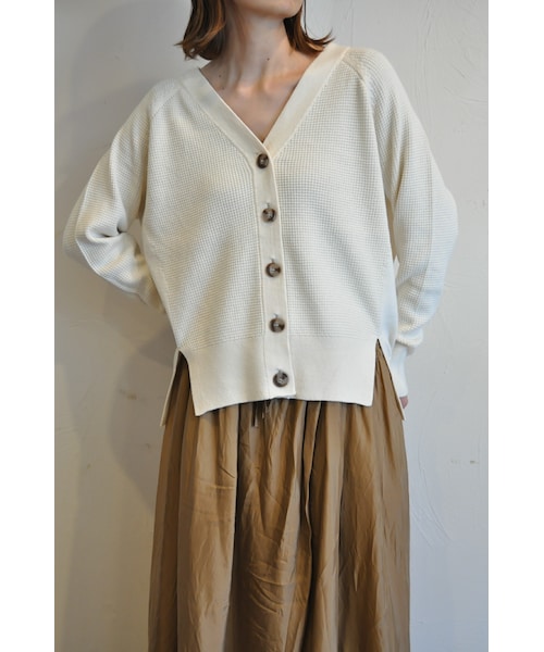上質なコットンカシミヤ素材のサーマルニット。 フロントサイドにスリットがはいいています。 ゆったりとしたサイジングで丈も長めです。