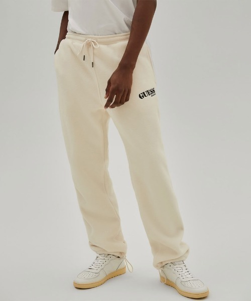 ソフトであたたかいフリース素材で仕立てたジョガーパンツです。 ロゴ刺繍のワンポイントもアクセントをプラス。 ウエストはゴム仕様で穿き心地もノンストレス。 裾にはドローコードを配しており、絞ることでシルエットの変化も楽しめます。 ■GUESSについて 1981年にマルシアーノ兄弟により創設され、ジーンズブランドとして始まったGUESSは、ブランド創設43周年を迎えました。 ヨーロピアン・スタイルとアイコニックなビジュアルでグローバル・ライフスタイルブランドと成長し、トータルコレクションを世界80カ国以上で1500以上の店舗で展開しています。