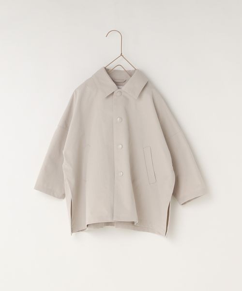 ポンチョ風の着やすいハーフコート。 ニットや袖にボリュームがあるアイテムでも着やすい形です! 軽くて少しハリのある素材なので、シャツっぽくサッと気軽に着れるアイテムです! 262550 グルカショートパンツ と同素材アイテム。 セットアップで着て頂くのがおすすめです! ※サイト上のサイズ名と、お届け商品に記載されているサイズ名が異なる場合がございます。
