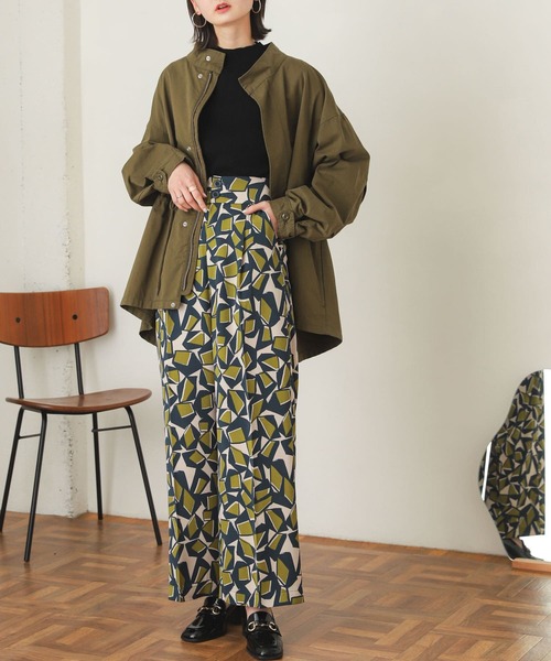 主役感満載! 幾何プリントが可愛いワイドパンツ ○ハイウエストでスタイルアップ ○トレンド感のある幾何プリント ○ダブルボタンがポイント styling ベーシックカラーのシャツやワンピースと着たくなる柄パンツ。2色ともにオススメです! ※商品画像は、光の当たり具合やパソコンなどの閲覧環境により、実際の色味と異なって見える場合がございます。予めご了承ください。 ※商品の色味の目安は、商品単体の画像をご参照ください。 ----------------------------- 透け感:なし 伸縮性:なし 裏地:あり 光沢:ややあり ポケット:あり -----------------------------