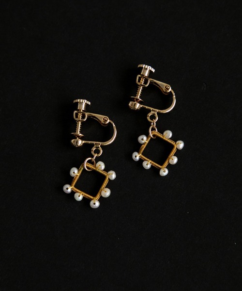 アミト【amito】『身の回りにいる家族や友人、恋人のように親密で、生活にそっと寄添うような存在』をコンセプトに、糸を金属に結びとめる技法で装身具を提案。糸の可能性を追求し、記憶に残るものつくりを目指す。----------------------------------------------------------------------デザイナーの若山麻子さんが、一つ一つ丁寧に編んで作るアクセサリーは時間をかけた手作業ならではの繊細な仕上がりで、ずっと大切にしたいと思えるジュエリーです。細い絹糸にひとつつづビーズを通して編まれています。うっとりするほど美しい手仕事。不揃いな淡水パールが、柔らかな印象を与えてくれます。細かなパールビーズを、規則正しく編み込んだイヤリング。小さめ正方形はクールな印象。フォーマルシーンにも普段の装いにも、自然に馴染みます。ネックレスとセットで使っていただくと、より繊細さが伝わります。耳元でさりげなく揺れる小さめなアクセサリーは、普段カジュアルな雰囲気の方にも馴染みやすいです。とにかく軽いので、長時間の着用でもストレスを感じにくいと思います。※繊細なパーツを使用している為、お取り扱いにはご注意ください。----------------------------------------------------------------------【AMB100貨】ひと・もの・ことがぐるりと巡りさまざまな場所で出会った「良いもの」をお届けするオンラインの百貨店です。Clean/unique/cheerfulをテーマに私たちが選んだ様々なジャンルのものを、そのまわりにあるストーリーと共にご紹介しています。----------------------------------------------------------------------------※撮影画像は、光の当たり具合やモニターの環境により色味が違って見える場合があります。あらかじめご了承ください。※取り扱いの注意については取り扱い表示をよくご確認の上、着用をお願いいたします。