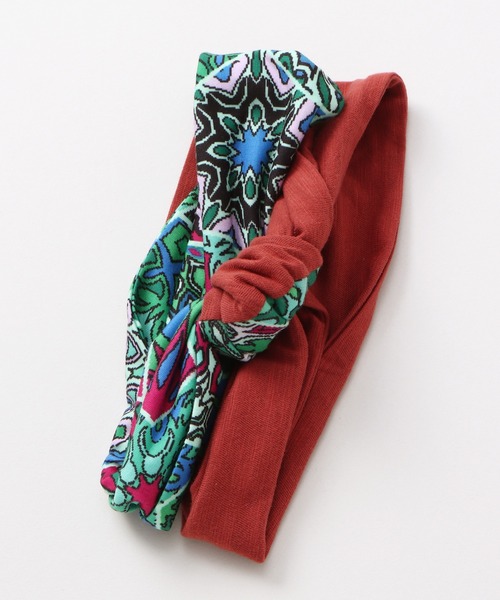 リゾート感たっぷりな柄と無地を組み合わせたヘアバンド・マルチターバン。ひとつの大きな輪になっていますので、クルクルとランダムにねじって真ん中でひねり、輪を二重にしてお使いください。ねじり方次第で自由に自分好みの着け方ができます。伸縮性があり程よいフィット感で、ストレスフリーな着け心地。リラックスした日常をあなたに。※こちらの商品は1点1点職人による手作りとなります。その為、生地の取り方により柄の配置や形・色合いなど若干異なる場合がございます。(画像は一例です。)あらかじめご了承ください。Amina Collection Co.,LTD.