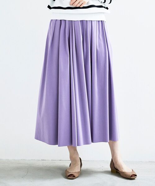 【定番のスカートも春カラーにアップデート!】 毎シーズン大人気!定番のリバーシブルスカート。 表裏リバーシブルで着て頂ける仕様と、シンプルなギャザーデザインで、着回し力抜群の1枚。 程よいハリ感のタフタ素材で華やかなボリューム感はありながら、広がり過ぎないシルエットに仕上げました。 2サイズ展開で、36サイズ、38サイズで着丈を変えているので、お好みや身長に合わせて選んで頂けます。 ==================== 透け感:なし 裏地:なし 伸縮性: 光沢感:ややあり 生地の厚さ:普通 ====================