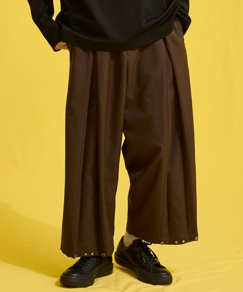 ◆素材 ウールとは思えないほどのハリ感もありながらもしなやかさも兼ね備えた風合いをもつ素材を使用したウールパンツ。 上品ながら、男らしい存在感もあるパンツに仕上がっております。 ◆デザイン ストレート~ワイドシルエット。 裾部分のホックを外すとワイドパンツに変わる2way仕様となっております。