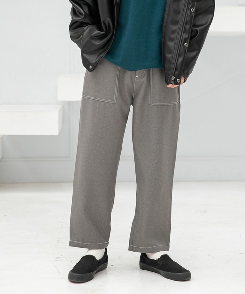 トレンド継続中のワークテイストに仕上げた、ベイカーパンツ。 各所に走るステッチディテールがアクセントです。 【素材】 ポリエステルツイル素材を使用。 洗濯してもシワになりづらく、通気性のよさと速乾性が特徴の機能素材です。 【スタイリング】 同素材を使用したブルゾンと合わせた、セットアップの着こなしがオススメです。