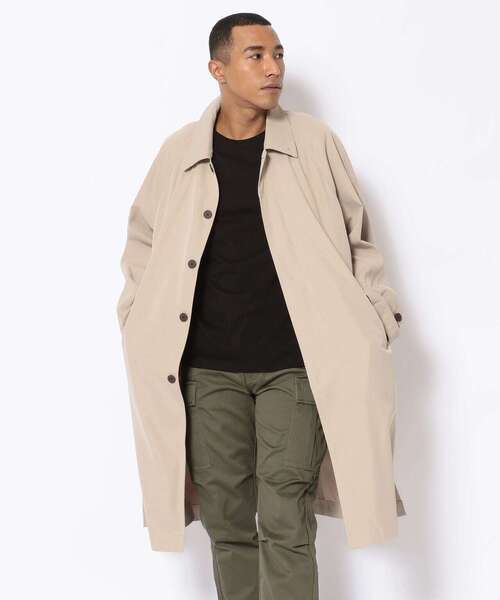 A4A(エーフォーエー) ステンカラーコート長年の定番アイテムとして愛され続けるステンカラーコート。ブランドのシグネチャーロゴとオリジナルグラフィックを大胆にプリントした一着です。ボタンが隠れる比翼仕立ての前立てに、ゆったりとしたラグランスリーブ仕様。ブラックとベージュのモダンなカラー展開で、オンオフ問わず多様なスタイリングに取り入れてお使い頂けます。サイズはゆったりとしたリラックスシルエットですので、インナーには肉厚なニットやカーディガン、パーカーなど様々なトップスが合わせやすくなっております。【A4A/エーフォーエー】大胆で独特なグラフィックプリントがブランドアイコン。モダンなストリートスタイルを得意とするエーフォーエーはルーズシルエットにドロップショルダーなどオーバーサイズのアイテムを多く展開し、常にトレンドを押えたデザインで人気。
