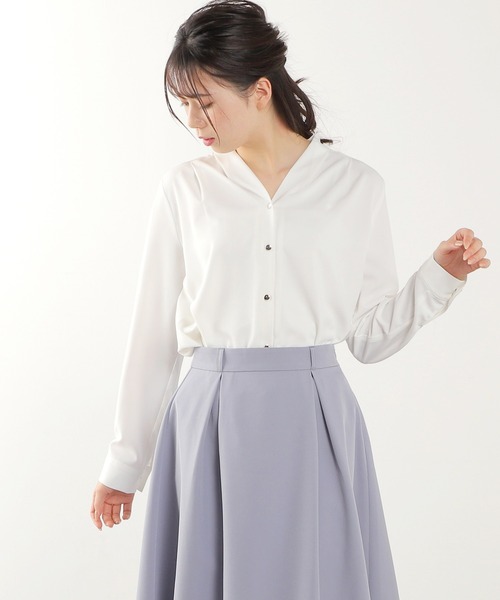 お仕事から卒業式・入学式などのセレモニーまで幅広く着回しがきく金釦使いブラウス♪ 落ち感のある 滑らかな肌触りも魅力的な1枚に仕上がりました。 金釦使いが女性らしさをプラスしました。 ジャケットのインナーにも合うサイズ感で フレアスカートやテーパードパンツと合わせた キレイ目スタイルと相性抜群◎ デニムと合わせて カジュアルダウンさせたコーディネートも おすすめです 品番:673-61-9166