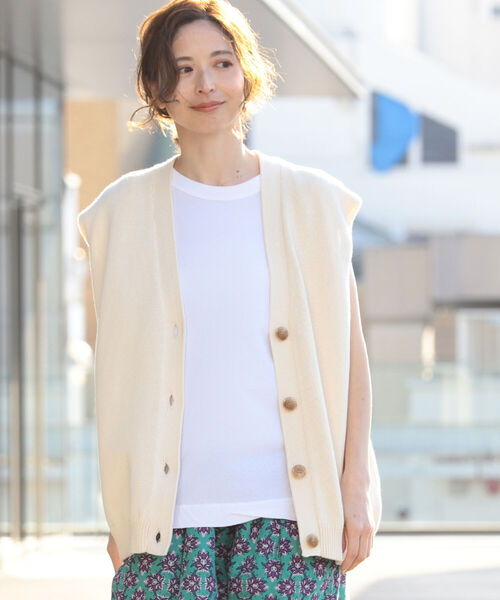 装いにニュアンスを添える コーディネートにアクセントを添えるニットベスト。柔らかなコットンと適度なハリ、光沢感を併せ持つヘンプ糸混紡のファブリックです。しっかりした編地ながらさらりとしたライトな風合いなので長いシーズン着用可能。程良くゆったりとしたシルエットがこなれたムードを演出します。長袖のシャツ、カットソーやワンピースとのレイヤードスタイルがおすすめです。 ●セットアップで着用可能なパンツもございます 品番:64-23-1020-639 ********************** 洗濯:可(手洗い) 生地の厚さ:普通 透け感:なし 伸縮性:あり 光沢感:なし 裏地:なし ********************** Model:H160(cm) Size:ONE SIZE 【スタッフレビュー】 Demi-Luxe BEAMS スタッフ 身長:168cm / 普段サイズ:38 / 着用サイズ:ONE SIZE サイズ感: インナーを着ても余裕が出来るくらい、身幅はゆったりしています。 素材感: 他の素材と合わせてももたつかない様な、サラッとした素材です。 ポイント: 肩や二の腕をカバーするフレンチスリーブになっております。 Demi-Luxe BEAMS スタッフ 身長:159cm / 普段サイズ:36 / 着用サイズ:ONE SIZE サイズ感: 脇周りがゆったりとしているのでボリュームスリーブとも合わせて頂きやすいです。 素材感: 柔らかすぎず程よくハリ感のあるコットン素材です。 ポイント: 清涼感あるサラッとした着心地で気温が高まる時期も着て頂きやすいです。