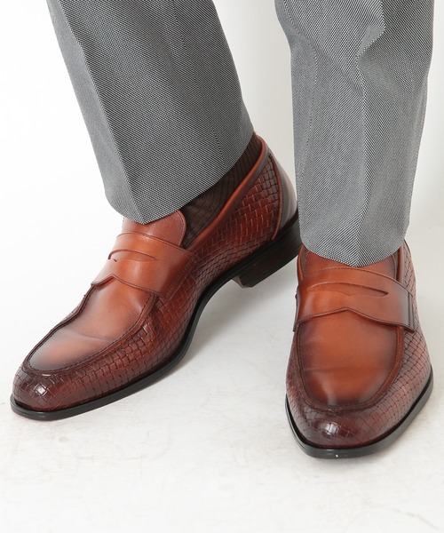 【素材・デザイン】 甲部分にムラ感のあるスムースレザーを使用。 サイドには同色の型押しレザーを使用したローファーです。 ムラ感があることにより程よい渋さを醸し出しており、「育てた」雰囲気を演出します。 サイドの型押しレザーでシンプルになりすぎない為、ビジネスシーンのさりげないアクセントとしても、ドレスシーンにもぴったり。 【カラー】 どんなコーディネートにもハマる使い勝手のよい「ブラウン」 少し個性を出したいときの「ネイビー」は一気にこなれた印象に。 【CROWDED CLOSET】 「シンプルになりがちなビジネスマンの装いを機能的で美しく。」をテーマにバリバリ働くビジネスマンの働き方に「装い」というベクトルからお力になれたら幸いです。 メンズビギ"MENSBIGI"の古き良き、確かなもの作りを基本にしながら、ファッション性と機能性を備えたアイテムをお届けします。 ※ゆとり感には個人差があります。【商品サイズ表】確認の上ご購入の目安としてご利用ください。 ※生地や仕様・デザインにより、着用感が異なる場合がございます。 ※モニター・パソコン環境により色味に誤差が生じる場合がございます。予めご了承くださいませ。