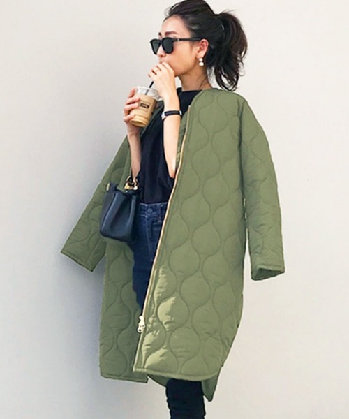 定番人気のキルティングコートが登場。すっきり着こなせるノーカラーデザイン。カジュアル過ぎず上品な印象で年齢問わず着用していただけます。・さっと羽織れる軽い着心地・大人カジュアルスタイルにもマスト・顔周りもすっきりとした印象に仕上がるノーカラー