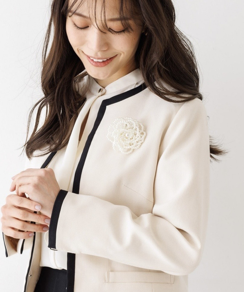 上品なパールのコサージュ。 セレモニースタイルをパッと華やかに格上げしてくれます。 お花のコンサバなコサージュが苦手な方にもおすすめです。
