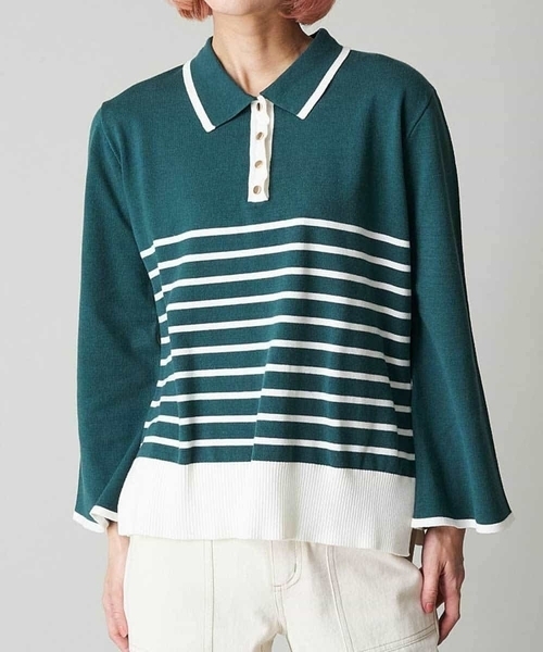 ◆配色デザインがこなれ感アップ◆ ■デザイン 襟先、袖先、前立てが配色デザインになっているのがポイント。 裾も配色デザインが施され、リブ素材を使用。 脇にはスリットが入っており、シルエットが美しい◎ 袖はベール袖でボタンにはゴールドのきのこボタンを 使用しています。 主張しすぎない程よいボーダーのデザインが アクセントにピッタリ◎ ■スタイリング カラー展開は、全色色味がはっきりしているので ベーシックカラーのボトムと合わせることで、 トップスの良さが引き立ちます◎
