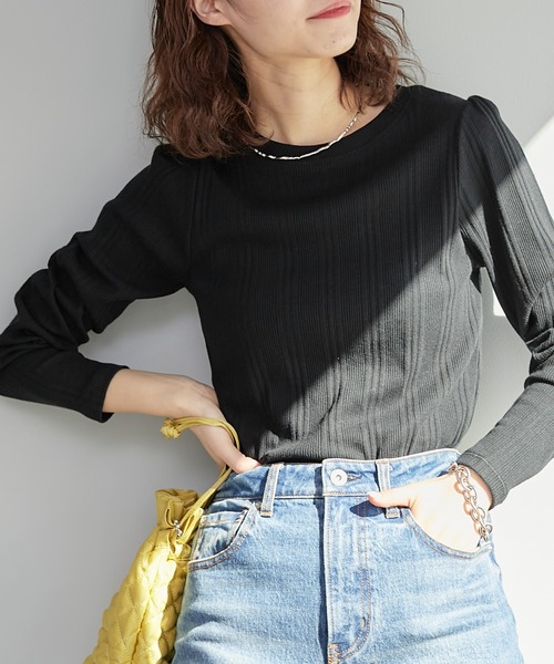 ■デザイントレンドライクなボリュームスリーブデザインを施したロンT。カジュアルながらも、さりげなく女性らしさをプラスしてくれます。肩にギャザーが入っているので、ふんわりシルエットに◎リブデザイン&クルーネックにすることで、甘くなりすぎないように仕上げました。コンパクトなサイズ感ですが、伸縮性があるので着やすいデザイン。ベーシックに使えるオフホワイト、ブラックに加え、トレンドの鮮やかなグリーン、オレンジの4色展開です。■素材伸縮性のある柔らかな生地。お家でのお手入れも簡単で、デイリー使いにぴったりです。■スタイリング一枚で着るのはもちろん、オーバーオールなどのインナーとしても◎ボトムにインしてすっきりと合わせるのがおすすめです。カジュアルにもきれいめにも使える万能アイテムです。気になった商品はお気に入り登録がオススメです! 入荷情報や、クーポン情報が通知されるようになります。※画像の商品はサンプルです。 実際の商品と仕様、加工、サイズ、素材が若干異なる場合がございます。