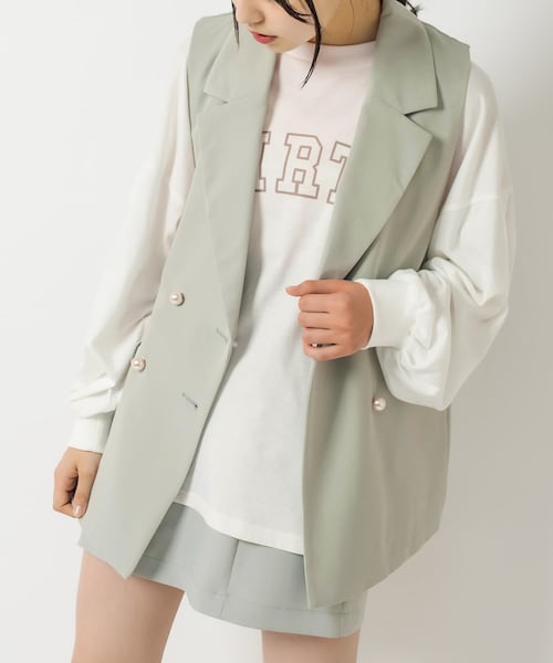 今シーズン注目のジレがロンTとSETになって登場!■デザイン・Tシャツは誰にでも着やすいサイズ感。シンプルなロゴプリント入り♪・ジレはダブルテーラードのディテールを取り入れたデザイン★・大きめのパールボタンで、OLIVEらしくガーリー仕様に。・腰まで隠れるロング丈のジレは、細見えさせてくれるうれしいアイテム。■スタイリング・【1420200304】ヘルシースタイルミニスカートとSETUPの着こなしもオススメ★・コンパクトなミニ丈ボトムスで合わせるとバランスよく、着ていただけます!・足元はブーツが旬style♪ローファー合わせもよりプレッピーな着こなしで◎です。-----------------------------裏地:あり光沢感:なし透け感:なし伸縮性:なし生地の厚さ:普通-----------------------------model:165cm☆お気に入り登録のおすすめ【気になるアイテムを登録】ハートをクリックしてお気に入りに登録すると完売カラーの再入荷やラスト1点の通知、セールの通知を受けとることができます。【ブランドを登録】♡お気に入りブランドに追加をプッシュして頂くと新作入荷や再入荷、セール通知など、いち早くブランドの情報を受けとることができます。是非ご利用下さい♪ ※着用、お取り扱いの際は、商品についている品質表示とアテンションタグを必ずご確認下さい。※ご覧のモニター環境や撮影環境により実際の商品と多少色味が異なって見える場合がございます。ご理解の程よろしくお願いいたします。【デニム】デニム製品の特性上、着用や洗濯によって「色落ち」「色移り」が生じます。デニム製品の特性をご承知の上、色合いの変化をお楽しみください。・ご着用中の摩擦等により移染します。白・淡色系の衣服、ハンドバッグ、靴、シート等は特にご注意ください。・デニム製品が雨水や汗で濡れると、より色移りしやすくなります。・洗濯により洗液がにごり移染しますので、他のものと一緒にしないで単独でお洗いください。・洗濯後濡れた状態で放置されますと色移りしやすくなります。・色移りしやすいため、下着やインナーには暗いカラーのものを着用いただくことをお勧めいたします。