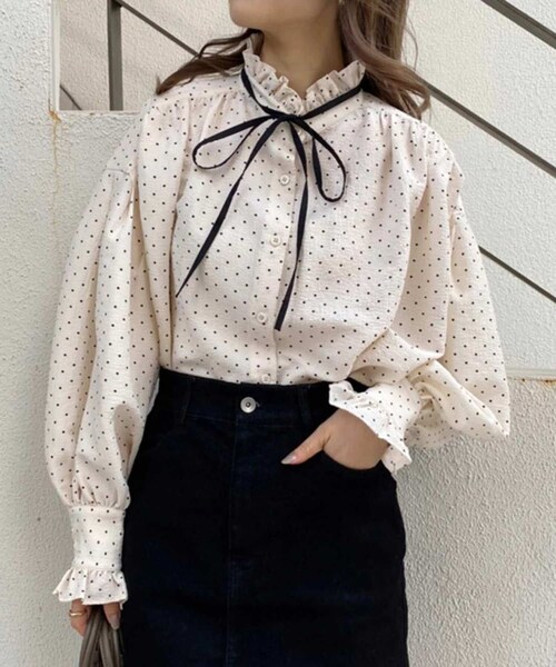 NICECLAUP 2022 early Spring Collectionクラシカルな雰囲気漂うボウタイブラウス着丈が長めなチュニックデザインなので小柄の方ならミニワンピース風としてもお使いいただけます。リボンは取り外し可能になっているので、その日の気分に合わせて着方も変えられるアイテムです。ナイスクラップらしい、ボリューム感ある袖がフェミニンな印象をプラス。リボンを外して前ボタンを開けると、羽織りとしても使って頂けます。着こなし方で、3wayの違ったコーデが出来るオススメアイテムです。※ブラウスの後ろにリボンを通すフープがあるので、リボンも無くしづらい仕様になっています■ オススメスタイリングフェミニンな印象を放つブラウスなので、ミニボトムとの相性は◎春先なら、ベスト合わせにするとトレンド感あるこなれた印象になります。デニムにインしてカジュアルダウンさせたコーデもオススメ。フレンチカジュアルなコーデになりオススメです。-------------裏地:なし伸縮性:なし生地の厚さ:普通生地の重さ:普通-------------※サンプルでの撮影のため、実際のものと仕様や色が異なる場合があります。※室内、室外での撮影のため実際より明るく映っていたり、暗く映っていたりする場合がございます。※品質表示を必ずご確認下さい。▼お気に入り登録のおすすめ【気になるアイテムを登録】ハートをクリックしてお気に入りに登録すると完売カラーの再入荷やラスト1点の通知、セールの通知を受けとることができます。【ブランドを登録】新作入荷や再入荷、セール通知など、いち早くブランドの情報を受けとることができます。是非ご利用下さい♪