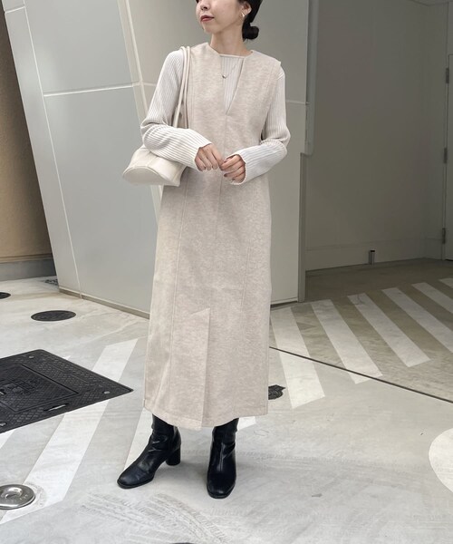 深めのキーネックが大人な印象に仕上げてくれるワンピースレイヤードスタイルが楽しめるメルトン生地のワンピース。ロンTやリブニット、シャツなどインナーを変えてスタイリングをお楽しみ頂けます。・すっきりと着やせするシルエット・表はウールライク、裏はカットソーのような素材・重ね着もしやすく冬も暖かい・小柄さんも着やすい長すぎない丈感・高身長さんは筒が長めのブーツ合わせがおすすめ・お家でお洗濯できるイージーケアなところも嬉しいポイント※生産の都合上、初回入荷のECRUより12/23以降入荷のECRUは色味が少し濃く異なります。 ご了承の上ご購入していただくようお願い致します。**********************透け感:なし裏地:なし伸縮性:あり光沢感:なし**********************▼手洗い可能※撮影場所やお使いのモニター環境により若干お色味が異なる場合がございます。特にロケの撮影では明るく見える傾向にございます。※商品はサンプルで撮影をしております。若干の仕様が変更になる場合がございますので予めご了承の上ご注文くださいますようお願いいたします。▼商品のお気に入り登録完売カラーの再入荷通知や、ラスト1点の通知、セールの通知も受け取ることができます。▼ブランドのお気に入り登録新商品や再入荷など、いち早くブランドのお得な情報を受け取ることができます。#live211207