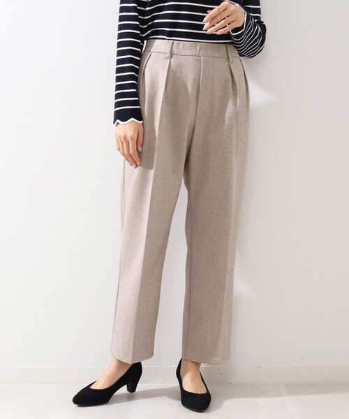 【デザイン】 程よいゆるさが心地よいセミワイド~裾にむかって細くなるゆるテーパードパンツ。 センタープレスが入っていることで、コーディネートにきちんと感をプラスしてくれるのが魅力です。 ※ポケット数:横×2 【生地感】 カットソー素材なのでリラックスして履いていただけます。 ※裏地なし 【サイズ】 大きいサイズ(LL)の展開あり。 ※04(LL)サイズはWEB限定サイズです。 モデル情報:身長167cm B79 W59 H87 着用サイズ:02(M) 店舗へのお問い合わせ商品番号:741-64007 ●製品寸法: 02(M):W65~75cm H90cm 股下66cm 前股上32cm 渡り幅30cm 裾幅21cm 03(L):W68~78cm H93cm 股下67cm 前股上33cm 渡り幅33cm 裾幅23cm 04(LL):W70~80cm H96cm 股下68cm 前股上34cm 渡り幅35cm 裾幅24cm 備考: