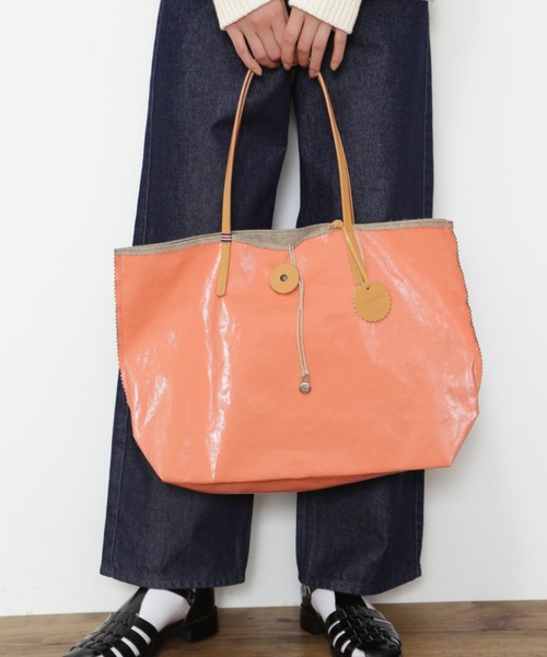 天然のリネンにポリウレタンをコーティングした、ジャックゴムの人気シリーズのトートバッグです。 軽さと耐久性と耐水性を備えつつ、レザーやゴールドメタルのディティールがよりシックな仕上がり。 21年にも登場した人気のトートバッグに新色が加わり、再登場です。 デイリーユースに使えて、カジュアル過ぎないのが人気の秘訣です。 ----------------------------------------------------------------------------------- 【HUMAN WOMAN】 1998年よりスタートした”フレンチトラッド”をベースにした大人な女性のためのカジュアルブランド。 素材や縫製にもこだわってつくられた上質な日常着は、長い時間大切にお使いいただけるようにお作りしています。 約20年の歴史の中で、「数年着続けても安心感があるお洋服」と多くの方に高いクオリティを認められてきました。 ベーシックなアイテムにさりげなく加えたトレンド感で、「私らしいカジュアルスタイル」を見つけてみませんか。 「カジュアルが好き」「少しだけトレンドも取り入れたい」 「大切に着たい」「私らしくいたい」そんな思いをかなえるお洋服をHUMAN WOMANでは提案しています。 -----------------------------------------------------------------------------------