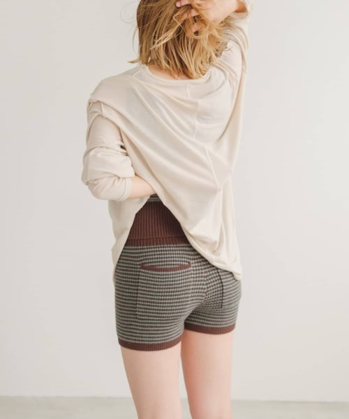 Miller別注アイテムの登場■デザイン股上の深いハイウエストニットショーツ。伸縮性がありながらもしっかりとした生地感で、程よいピッチのリブとコンパクトなシルエットが◎おうち時間にぴったりなリラックスアイテム。▽同生地のアイテムはこちらMiller別注SETUPニットビスチェ Miller別注SETUPフレアニットパンツ ■素材・洗濯表示素材:レーヨン50%,ナイロン29%,ポリエステル21%洗濯:洗濯ネットに入れ洗濯機の手洗い/ソフト/おしゃれ着コースで洗濯可能タンブル乾燥:不可アイロン:110℃まで【Miller / ミラー】1937年創立のアメリカのアンダーウエアブランド。miller独自の針抜き仕様「PANEL RIB」は非常に画期的な技術で、1940年代から60年代にかけて現在にも続くブランド地位を確立。そのハイクオリティな製品は長きに渡って多くの人々に愛用されています。着込むほどに馴染み、使い勝手の良いアイテムが人気。※サイズ採寸は各モールによって異なり、多少の誤差が生じる可能性がありますのでご了承ください。※商品画像はサンプル品を使用しているため、実際の商品と仕様、加工、サイズが若干異なる場合がございます。また、可能な限り実物に近いカラーにて掲載していますが、使用しているパソコンのモニター設定や、携帯電話のメーカー・機種により実際のカラーと異なって見える場合がございます。予めご了承ください。▼商品のお気に入り登録完売カラーの再入荷通知を受け取ることができます。▼PALCLOSETアプリにてブランドフォロー新商品や再入荷等、いち早くブランドのお得な情報を受け取ることができます。<返品・キャンセルについて>・着用・洗濯後の返品は致しかねます。・商品到着後、着用前に商品を確認して頂きますようお願い致します。220115
