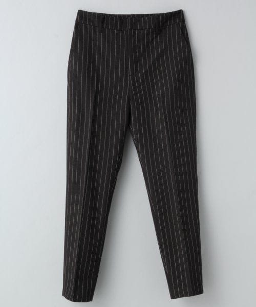 上品なピンストライプのワイドトラウザー。ゆったりした履き心地ですがラインが綺麗なので上品に決まります☆ニットでフェミニンに合わせても、ウラケでカジュアルにはずしても可愛いです!