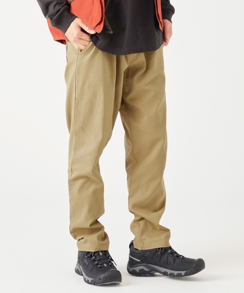 《こちらは直営WEBショップ限定アイテムです!》 クライミングパンツのディテールを落とし込んだ、ウエストゴム仕様のイージーパンツです。 春・秋に穿きやすい生地感で、高いストレッチを持つコットンツイル生地を使用しています。 股下にガゼットクロッチ(マチ)を配し、180度開脚できるほどの可動域を発揮。 ヒザの曲げ伸ばしやアクティブな動きにもしっかり対応します。 膝下から緩やかにテーパードしたシルエット。 幅広いスタイリングに合わせやすいアイテムとなっています。 ベルトループが付いているので、キーフックや・チョークバッグ・カラビナなど、様々なアクセサリーも取り付け可能です。 ※付属のベルトは飾りベルトです。 2~3cm絞れる程度の調節が可能となっていますのでご注意下さい。 ------------------------- シルエット:スタンダード 生地の厚さ:中肉 透け感:なし 伸縮性:あり 裏地:なし ケア方法:洗濯機洗い可 ------------------------- ●『KRIFF MAYER』(クリフメイヤー) General Wear for FAMILY CAMP!! 家族で着られるアメリカンカジュアルをテーマに誕生したクリフメイヤー。 より家族が生き生きと暮らすには、シティ⇄ネイチャーのボーダーをなくす必要があると感じています。 その一つのキーとなるのが、「ファミリーキャンプ」だとクリフメイヤーは思うのです。 お父さんが「今週末はキャンプに行こっか」と言えば、「釣りやってみたい!それと川遊びも!」「わたしは焚き火でマシュマロ焼く!」と子供たちが嬉しそうにしている、そんな光景が日常に溢れるようにしていきたい。 クリフメイヤーに着替えたら、それは待ちに待った週末の合図。 家族との特別な時間を当たり前に。 クリフメイヤーの「General Wear for FAMILY CAMP!!」にはそんな想いが込められています。