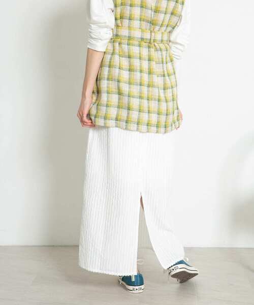 【フェミニン過ぎない着こなしが叶うストライプジャガードフレアスカート】 ベーシックなフレアシルエットのスカートに、表面感のあるストライプジャガード柄を取り入れることで他には無い仕上がりの1枚。楽な穿き心地が期待できる後ろゴム仕様や程良い抜け感を演出するバックスリットにも注目。お好きなカラーを選んでみて。 POINT ・表面感を演出するストライプジャガード柄 ・楽な穿き心地が期待できる後ろゴム仕様な ・抜け感を出すバックスリット COORDINATE 腰回りがすっきりとしているのでボリュームのあるトップスと合わせても重たくなり過ぎず着ていただけます。 ====================================== お気に入り登録のおすすめ ■商品のお気に入り登録 再入荷・ラスト1点、セールの通知などを受け取ることができます。 ■ブランドのお気に入り登録 新商品や再入荷、クーポン情報などお得な情報を受け取ることができます。 ====================================== ※商品画像は、光の当たり具合やパソコンなどの閲覧環境により、実際の色味と異なって見える場合がございます。予めご了承ください。 ※商品の色味の目安は、商品単体の画像をご参照ください。 ----------------------------- 透け感 : ややあり(OFFのみ) 伸縮性 : なし 裏地 : あり 光沢 : なし ポケット : なし ----------------------------- One