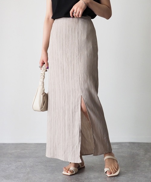 【Riberry ドビースリットタイトスカート】 すっきりシルエットのナロースリットスカート ■Styling トレンドの深スリットスカートは すっきりしたナローシルエットを選べばどんなコーデとも相性抜群。 深めのスリットがIラインを強調し細見え効果も♡ 薄手のブラウスやTシャツをインした着こなしはもちろん、 ボリュームのあるニットやオーバーサイズのスウェットなどと合わせても すっきりとコーディネートが決まります。 ■Detail すとんとしたデザインながら、身体のラインを拾いにくい素材感。 スリット入りですっきり見えるシルエットが嬉しいタイトスカートです。 裏地付き、後ゴム仕様で着脱も簡単です♪ ■Material 表面感のあるドビー素材で無地に見えるのにさりげなくおしゃれ。 タイトなシルエットとヘルシーな肌見せがレディすぎない程よい辛口感です。 ※詳しいお手入れ方法は商品タグをご参照ください。 【Information】 ◆《お気に入り登録》がオススメ◆ ・「商品のお気に入り登録」で再入荷通知や、ラストの通知、セール通知も受け取ることが出来ます。 ・「ブランドのお気に入り登録」で新商品や再入荷など、お得な情報を受け取ることが出来ます。 ※撮影時のライティング、ご覧になっているモニター・PC環境により、実際の商品と色味が異なって見える場合がございます。予めご了承をお願い致します。