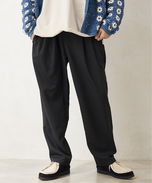 爆発的ヒットを続けているCALIFORNIA シェフパンツシリーズよりスラックス感覚で履けるツータックパンツ型が登場! 他のシェフパンツとは圧倒的に違う生地感とシルエットが特徴です。 生地感はかなり柔らかく、足を動かすたびに揺れるドレープ感がトレンド感のある作りになっています。 さらに、今回はブラック、ブラウン、ネイビー、ブルーの4色の暗めカラーでまとめて使いやすさ満点のカラー展開となっています。 さらにシルエットは太もも辺りにゆとりを持たせ、裾に向かっていくにつれて若干のテーパードをさせており、カラー・素材感も相まってきれいなシルエットに仕上がりました。 別名「コックパンツ」とも呼ばれるいわゆる作業パンツがルーツですが、それを感じさせなCALIFORNIA シェフパンツを是非ご堪能くださいませ。 ********************** 裏地:なし 伸縮性:なし 光沢感:ややあり 生地の厚さ:普通 ********************** 【スタッフ着用コメント】 《スタッフH》 身長:170cm/体重:60kg/体型:中肉中背/普段サイズ:M/着用サイズ:L サイズ感:ゆったり履くならLでも。 素材感:しっかりとした生地ですが、キレイな見た目。 着心地:足通り良く、軽い履き心地。 ********************** ※店頭・外での撮影画像は、光の当たり具合で色味が違って見える場合があります。 商品の色味は、スタジオ撮影の画像をご参照ください。 モデルサイズ:H177cm W64kg 着用サイズ:L 本体:洗濯機洗い(弱)、色あせ、ピリング