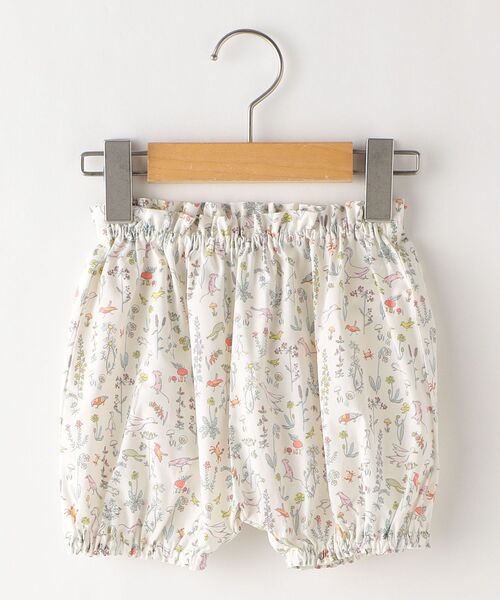 リバティのエターナルコレクションやシーズン柄を使用したブルマです。 ベビーのコロンとしたお尻をさらに可愛く見せるシルエットにこだわった愛らしいアイテム♪ ウエストと足口は柔らかいゴム仕様なので繊細なベビーにも優しいお作りです。 ボトムとしてはもちろん、スカートやワンピースのアンダーショーツとしてもお使いいただける便利な一枚◎ 速乾性を活かして、水遊びの際にもおすすめです。 日本製なのでギフトにも喜ばれること間違いなし♪ オフホワイト「Theo」・・・まるで党大会で動物や植物たちが布の上を縦横無尽に走り回っている様子を手書きしたようなカンバセーショナルな柄で、タマラ・ドゥ・ペオンによるものです。同柄でスタイ(品番:519-10-0070)もございます。 ナチュラル「Ameber’s Posy」・・・英国の野生のガーデンで見られる様々な花や葉、果実などを表現した「アンバーズ・ポージー」。オリジナルのスケッチは、夏の風にゆれるような植物を水彩インクを使って手描きされました。同柄でスタイ(品番:519-10-0070)、ロンパース(品番:512-81-0519)、ブラウス(品番:511-30-0062~511-30-0064)もございます。 オレンジ・ライトブルー「Garden Of Life」・・・咲き乱れる花々がシュールなツリー・オブ・ライフのデザインを構成している「ガーデン・オブ・ライフ」。「不思議の国のアリス」と「鏡の国のアリス」でアリスが出会ったおしゃべりな庭の花々からインスパイアされソフトなペンシルクレヨンで描かれました。ひまわり、チューリップ、バラ、パンジー、ライラック、水仙、ユリなどの花々が描かれています。同柄でブラウス(品番:511-71-0254~511-71-0256)、スタイ(品番:519-10-0070)、ボンネット(品番:518-50-0176)(ライトブルーのみ)もございます。 ブルー「Jacqueline's Blossom」・・・1967年に制作されたアーカイブデザインをベースに再描画した「ジャクリーンズ・ブロッサム」。モノクロのパレットにグラフィカルなアウトラインでシンプルに描いたデイジーやサクラソウが一面に散りばめられています。同柄でスタイ(品番:519-10-0070)、ボンネット(品番:518-50-0176)もございます。 【LIBERTY(リバティ)社】 英国・ロンドンにある老舗百貨店。1875年に実業家アーサー・リバティ氏が東洋の装飾品や美術品などを扱う小さなお店をオープンしたのが始まりです。リバティは、当時のヨーロッパではとても貴重だった東洋の製品を独自のセンスで仕入れ、あらゆる室内装飾品を充実させて事業を拡大しました。その中で最も有名なものが「リバティプリント」です。リバティプリントは、日本の絹織物からインスピレーションを受けたと言われており、アールヌーボー柄や小花柄、植物やペーズリーなどが繊細なラインで描かれ、モノトーンから多色まで微妙な色彩のハーモニーを奏でています。毎年、春と秋にパリで行われる「プルミエール・ビジョン」というテキスタイルの見本市では、リバティの次のシーズンコレクションが世界中のバイヤー達の注目になります。