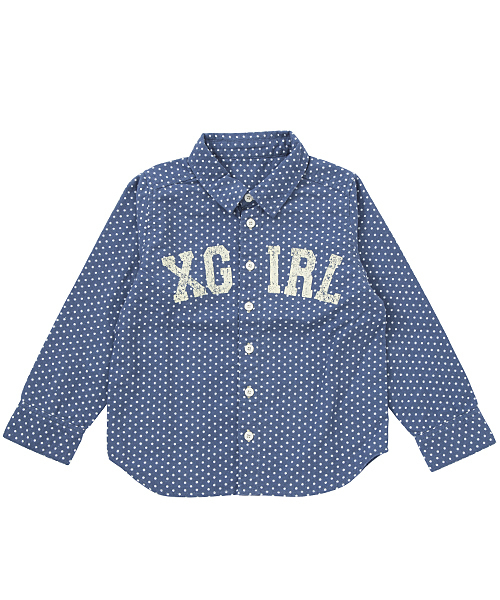 チェックとドット柄の定番型シャツ。前にロゴプリントがNICE!TEEの上から着たり、しっかりボタンを閉めてパンツにインしたり着方は色々!