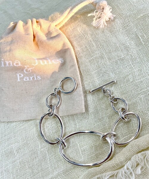 洗練された大人の雰囲気を演出してくれる●デザインランダムチェーンが遊び心をプラスするシルバーブレスレット。大きさの異なるチェーンを合わせたシルエットは他にないNINA&JULES (ニナ・エ・ジュール)ならではのデザイン性の高さで、その存在感は手首周りを華やかに演出してくれます。合わせるスタイリングを選ばずデイリーユースに大活躍してくれます。シルバー925なので、お手入れしながら長くご使用いただけます。●サイズ長さ:約19.5cm●素材SILVER925【NINA&JULES (ニナ・エ・ジュール) 】フランス人夫婦セルジュ&ダニエル・コルベイが2008年にローンチした、ジュエリーコレクション。原産地はメキシコ、デザインはフランス産まれのシルバーは、上品な見た目ながらリーズナブルでデザイン性豊かなコレクションがラインナップされている。--------------------------------------------------------------------------------【注意点】※画像の商品は光の照射や角度、お使いのモニター環境により、 実物と色味が異なる場合がございます。あらかじめご了承下さいませ。--------------------------------------------------------------------------------【『♡』をクリックでお気に入り登録】・ラスト1点や再入荷の通知が届きます。 --------------------------------------------------------------------------------#今買いアイテム