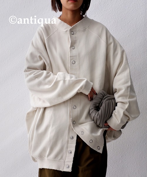 『シルエットにキュン』着こなし自在の裏毛コクーンカーデ。 コクーンの絶妙シルエットに思わずキュンとする。華奢魅せも叶える万能な一枚が登場! カーデとして重ねて魅せても、トップスとしてゆるっと着ても抜け感のあるコーデが即完成する♪ 難しい季節の変わり目も活躍しちゃう。迷ったらこのアイテムが断然オススメ! ≪DETAIL≫ ・antiquaでも長くに渡り大人気のコクーンシルエットを採用。 ・斜めラインのネックラインがさりげなくすっきり魅せ。 ・両サイドに便利なポケット付き。 ・ラグランスリーブがゆるっとした印象。 ・リングスナップのボタンがアクセントに! ・オーバーシルエットながらもリブがメリハリをつけてくれる。 ・シンプルだからこそダメージ加工で風合いバツグン。 ≪FABRIC≫ ・上質な綿100%を使用。 ・柔らかな肌当たりで丁度良い厚みのスウェット。 ・リブ部分にはウレタンをプラスし伸縮性バツグンに! ≪COLOR≫ アッシュグレー・ アイボリー・ブルー系その他 の選べるくすみカラー3色展開! ≪SIZE≫ フリーサイズ! ≪RELATION≫ 【同商品キッズ商品】63515940/TN-00096 裏毛コクーンカーディガン ※この製品は独特な雰囲気を出すためにダメージ加工を施しております。 16アッシュグレーはダメージ加工の特性上、赤い繊維が見えてしまう場合がございますが 無理に引っ張ったりせず目立たない長さにカットしてください。