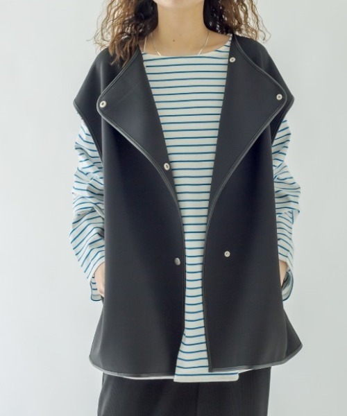 トレンドのレイヤードスタイル叶うジレが登場!商品ポイント・軽量で程よいつや感のあるポンチ素材のジレが登場。・ヒップラインが隠れる長めの丈感はシルエットを綺麗に見せてくれます◎・異素材のパイピングデザインがスタイリングポイントに◎・バックスリットは程よい抜け感を出してくれます。スタイリングポイント・綺麗めなスタイリングにはもちろんカジュアルなデニムやスウェットにも相性抜群◎・軽量素材なので長いシーズンでお使い頂けます。着用コメント身長:154cm 骨格:ストレート低身長でもすっきりとしたシルエットで決まります!ショートパンツに合わせてトレンド感のあるスタイリングに◎身長:159cm 骨格:ウェーブ腰回りが隠れる長めの丈感なのが嬉しいポイント◎レーストップスを合わせてすっきりとしたスタイリングがオススメです!身長:162cm 骨格:ナチュラル高身長でもバランスよく決まります!軽い素材感なのでスウェットなどにレイヤードしてもすっきりと合わせて頂けます!骨格タイプ"ストレート:全体的に立体型で筋肉質。ひざ下はすらっと細め。ボディラインにメリハリがある。ウェーブ:上半身が薄く、華奢。緩やかな曲線のボディライン。下半身に重心があり女性らしい体型。ナチュラル:筋肉や脂肪があまり感じられない体型。腰の位置が高く骨や関節が目立ちやすい。"※洗濯、取り扱い洗濯:40度限度 手洗いアイロン:低温110℃まで スチームなし(あて布使用)タンブル乾燥:不可------------------------------------------------------裏地:なし伸縮性:あり光沢感:なし生地の厚さ:普通------------------------------------------------------------------------------------------------------------商品のお気に入り登録➡ お気に入りアイテムの値下げ・再入荷・在庫1点などの通知を受け取ることができます。ブランドのお気に入り登録➡ 新商品や再入荷、セール、クーポン配布などお得な情報を受け取ることができます。※サイト上のカラー名と、お届け商品に記載されているカラー名が異なる場合がございます。※商品の色味は、撮影場所や光のあたり具合などにより色味が違って見える場合が御座います 。また、お客様のお使いのPCのモニター環境などにより色味が違って見える場合が御座います。予めご了承の上ご注文下さい。※ご注文いただいた予約商品のお届け時期の確認は、注文履歴ページより行えます。------------------------------------------------------"