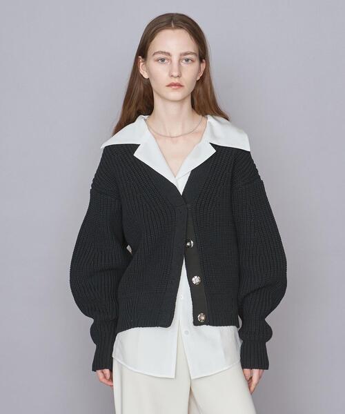 畔編みのざっくりとした生地感とビッグシルエットで抜け感漂うVネックカーディガン。■デザインデコルテが綺麗に見える大きなVネックラインを採用。フロントはスナップボタン留めのためすっきりとした印象です。丸みを帯びた袖のボリューム感も女性らしさをプラスしてくれます。■素材コットンにナイロンを織り交ぜた、さっぱりとした風合いのニットを太いゲージで編み上げた畔編みニット生地。■コーディネートゆったりとしたシルエットですが着丈が短めのため、ワイドパンツやギャザースカートとも好相性で様々な着こなしを楽しめます。============================裏地:なし透け感:なし光沢感:なしケア方法:ドライクリーニング============================【注意事項】※商品を使用前に、タグ等に記載されている「取り扱い上の注意書き」、「洗濯表示」を必ずご確認ください。※商品画像は、光の当たり具合やパソコンなどの閲覧環境により、実際の色味と異なって見える場合がございます。予めご了承ください。※商品の色味の目安は、商品単体の画像をご参照ください。店舗へお問い合わせの際は、全国のUNITED ARROWS各店舗まで下記の品名/品番をお申し付け下さい。品名:AM C/NY AZE SNAP CGN 品番:8728-199-0008