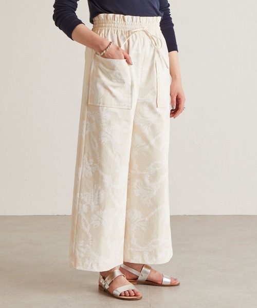 大胆なロープ柄をペイントしたワイドパンツ。 キャンバス生地に、絵具で絵を描くようなイメージで、 顔料プリントを施しました。 大胆な大柄ですが、アイボリー地×ホワイトペイントで、派手すぎず、また他にないオリジナルのロープ柄プリントにしています。 ウエスト部分は一周ゴムのイージーパンツで、パッチポケットとリボンがアクセントになっているので、トップスをインするのもおすすめです。 同じプリントを使用したスカートやコートもご用意。 ⇒ロープ柄スカートBEZ1021301A0002 \29,700(税込) ⇒ロープ柄フードコート BEZ1021308A0001 \42,900(税込) ・腰周りが気になる方にオススメ 《商品画像について》 ご覧頂いている商品の写真につきましては、できるだけ実物の色に近くなるように努めておりますが お使いの環境(モニター、ブラウザ等)の違いにより、色の見え方が実物と若干異なる場合がございます。 予めご了承ください。 《予約商品について》 ・こちらの商品はサンプルでの撮影・計測となっております。実際の商品とは、商品の一部仕様が変更になる場合がございます。 ・サンプルの為、混率の詳細が確定しておりません。確定次第、記載いたします。 ・工場の生産の都合上、納期が変更になる場合がございます。発送日の前後についてはあらかじめご了承ください。 ・入荷状況により、お客様への発送が店頭販売より遅れる場合もございます。 《ハートをタップして商品のお気に入り登録》 登録カラーの商品の「残りわずか」「再入荷」「値下げ」通知を受け取ることができます。