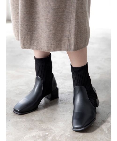 サイドゴアブーツにソックスを履いているように見えるドッキングデザインのショートブーツ。 スクエアヒールで安定感があり履きやすく疲れにくい1足です。 ※韓国製のやや小さめのつくりのため、ご自身のサイズより0.5UPがおすすめです。