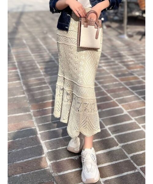 鈎針風シリーズのスカートが今年も登場!! ナチュラルなマーメイドシルエットなので コーディネートにも馴染みやすく、 合わせるだけでシーズンムードが出る1着です。 裾にかけて広がるフレアラインなど エレガントなディテールを使い 女性らしい上品なアイテムに仕上げました。 ※着用画像はフラッシュの加減で実際の製品と色味等が異なる場合がございますので、生地のズームアップ画像をご確認ください。 ※ご利用の端末画面の設定により実際の商品と色味が異なる場合がございます。 【商品特徴】 透け感:なし 伸縮性:あり 生地の厚さ:普通 サイズ感:普通 裏地:あり ポケット:なし ファスナー:なし 《 お気に入り登録「♡」がおすすめ! 》 RESEXXYのお得な情報をいち早くGETできます◎ ♥:アイテムをお気に入り ⇒ SALE START / 完売COLOR再入荷 / LAST1点 etc... ♥:ブランドをお気に入り ⇒新商品 / 再入荷 / クーポン・セール情報 etc...