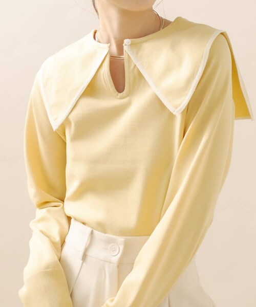 襟元のバイカラーデザインがポイント!一枚で華やぐ主役級ニットです商品ポイント・コンパクトなサイズ感でボディラインを拾いすぎずすっきりとした印象に・大きめなビックカラーが目を引くデザイン・サラッとした肌触りでストレスフリーな着心地スタイリングポイント・すっきりとしたデザインなのでハイウエストボトムなどと合わせてスタイルUP!・デニムと合わせてカジュアルな印象に◎スタッフ着用コメント〇153cmスタッフ サイズ:フリー カラー:OFFミニマムなデザインがボディラインにしっかりはまって嬉しいポイントです。ボトムはミニボトムと合わせてボリュームブーツで合わせるのが気分です!〇158cmスタッフ サイズ:フリー カラー:YEL襟元が大きく目を引きデザイン、お顔周りが華やぐのでお出かけやデートコーデにはピッタリ!!ボトムはすっきりとしたハイウエストパンツやマーメイドスカートと合わせています!〇163cmスタッフ サイズ:フリー カラー:BLKブラックにオフのパイピングがすっきりとした印象になるのでお気に入りのポイントです。ブラックのボトムでセットアップ風に着るのがおすすめです。足元はヒールで合わせて女性らしい印象をプラス!※洗濯、取り扱い洗濯:40度限度 手洗いアイロン:中温150℃まで (あて布使用)タンブル乾燥:不可------------------------------------------------------裏地:なし伸縮性:あり光沢感:なし生地の厚さ:ふつう------------------------------------------------------------------------------------------------------------商品のお気に入り登録➡ お気に入りアイテムの値下げ・再入荷・在庫1点などの通知を受け取ることができます。ブランドのお気に入り登録➡ 新商品や再入荷、セール、クーポン配布などお得な情報を受け取ることができます。※サイト上のカラー名と、お届け商品に記載されているカラー名が異なる場合がございます。※商品の色味は、撮影場所や光のあたり具合などにより色味が違って見える場合が御座います 。また、お客様のお使いのPCのモニター環境などにより色味が違って見える場合が御座います。予めご了承の上ご注文下さい。※ご注文いただいた予約商品のお届け時期の確認は、注文履歴ページより行えます。------------------------------------------------------ '