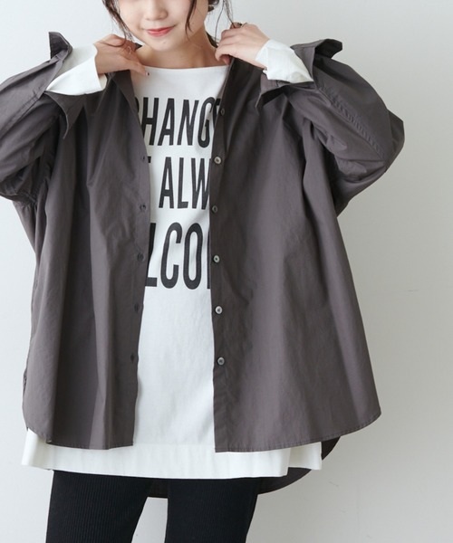 ピュアルセシン 2022 spring collection【Loose and classical】 ◇キレイめとラフさを備えた幅広いスタイリングに対応する春ブラウス◇ ●デザイン 塩縮加工を施し、ややハリ感のある綺麗見えブラウス。 フロントのボタンを全て外せば羽織りとしてもお使いいただけます。 長めのカフスや前後差のある着丈、 ラウンドした裾など女性らしい柔らかさを兼ね備え、 メンズライクになり過ぎない1枚に仕上げました。 ●カラー展開 ホワイト/グレージュ/チャコールの3色展開 ●素材感 塩縮加工を施すことによりほんのりシワが生まれ、ピンと張り過ぎない絶妙な緩さがポイント。 コットン100%素材なのでご自宅でお手入れしていただけます。 ●スタイリグ ヒップを隠す着丈なのでパンツ合わせがオススメ。 シンプルなカットソーと合わせたきれいめなスタイリングから、プリントカットソーと合わせたカジュアルなスタイリングまで幅広く対応します。 ============================ 透け感:ホワイトのみややあり 裏地:なし 伸縮性:なし 光沢感:なし 生地の厚さ:普通 【スタッフコメント】 年齢:20代前半/身長:157cm/普段着用サイズ:Mサイズ サイズ感:身幅、アームホールともにゆったりしたサイズ感です。切り替えがなく、ストンと落ち感があります。 素材感:コットン100%素材。ややハリ感がありますが、サラッとしているので肌馴染みの良い1枚です。 =============================== ※撮影場所やお使いのモニター環境により若干お色味が異なる場合がございます。特にロケの撮影では明るく見える傾向にございます。 ※予約商品はサンプルで撮影をしております。若干の仕様が変更になる場合がございますので予めご了承の上ご注文くださいますようお願いいたします 。