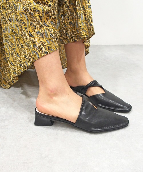 2022 - Spring - ≪ねじれデザインがおしゃれに【撥水】ソフトレザーミュール≫ 2022年春夏、大人のリラックススタイルにぴったりのミュールができました。 アシンメトリーのアッパーが足を綺麗に見せつつ、アウトステッチが個性的でおしゃれな足元に。 程よいヒールも抜け感があり、都会的な足元に仕上げてくれる一足です。 ピスタチオのようなボタニカルグリーンにキラッと光るプラチナ、モダンなブラックと様々なスタイルに合わせやすいカラーリングにも注目です。 ◆パンプスデザインは「No.8650377」 履き心地のポイント 撥水加工された柔らかい革のアッパーがやさしく甲をホールド。 撥水レザーなので汚れが付きにくく、デイリーユースに最適。 クッションインソールや程よい高さで安定感のあるヒールが歩きやすく、ストレスフリーな履き心地です。 コーデのワンポイント ミュールは2022年春夏のトレンドアイテム。 他と差を付けるなら、個性的なデザインを。 上質レザーを使用したアプレのミュールは程よい肌見せ具合も品があり、大人のカジュアルコーデやリゾートスタイルにぴったりです。 シアー感のあるワイドパンツやスカートなど、ボリュームのある長めの丈のボトムスと合わせると今年らしい抜け感のあるスタイルに。 【片足の重さ:185g】 - aprés(アプレ) - 日本の職人が丁寧に作りこんでいくアプレの革靴。 華美な装飾はせずに、上質な素材が醸し出す風合いと、こだわりの詰まったデザインやフォルムを楽しむ大人の女性のための1足です。 ■商品について 画像の商品はサンプルです。 実際の商品と仕様、加工、サイズ、素材が若干異なる場合がございます。予めご了承ください。 トップの画像は、光の具合で色味が違って見える場合があります。商品の色味は、スタジオ撮影の画像をご参照ください。 サイト上のカラー名と、お届け商品に記載されているカラー名が異なる場合がございます。 厳選された素材を使用しておりますが、雨に濡れたり、汗による湿気、乾燥状態での摩擦により革が色落ちし、薄い色の衣服、靴下などに色移りする可能性がございます。ご使用の際には十分ご注意くださいますようお願い致します。 ■返品について 商品の性質上、ご着用後のご返品については お受けすることができません。あらかじめご了承ください。修理依頼は、カスタマーサポートセンターお問い合わせ「ご注文に関するお問い合わせ」までご連絡ください ◆気になる商品は「お気に入り」登録を◆ ハートマークをクリックし、お好きなカラーを選んでお気に入りに登録すると入荷情報や残り1点の通知、完売カラーの再入荷、セール情報などを受け取ることができます。