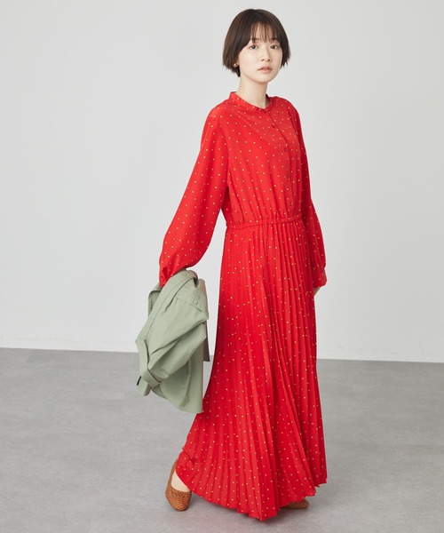 細かく散りばめた柄が、フェミニンなシルエットに映えるワンピース。ハイウエストラインからの切り替えプリーツのしっとりとしたゆれ感が洗練された女性を演出してくれます。 きゅっと引き締め感のあるスタンドカラーが顔周りを華やかに。フィット感を抑えたロング丈のIラインシルエットがスタイルを良く見せてくれます。 ● AMERICAN HOLIC ● (アメリカンホリック) 大人の女性の毎日を軽やかで豊かにするブランド。 カジュアルなのにオシャレ、コーディネートも楽。ONにもOFFにも等身大で楽しむオトナの日常着をテーマに、スタイリッシュかつ自然体を楽しめるカジュアルスタイルを提案します。 ▼ 商品のお気に入り登録がおすすめです ▼ 商品ページ内のハートマークをクリック。完売時の再入荷や、最後の1点の通知、コーディネート画像がアップされたとき、お得なお値下げの際の通知を受ける事ができます。 【お知らせ】ページでも通知が確認できます。