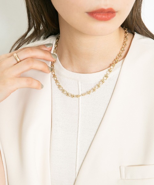 【どんなスタイリングにもマッチするチェーンネックレス】 スタイリングを選ばずに付けていただけるハンドメイドチェーンネックレス。お手持ちのアクセサリーとの重ね付けはもちろん、単品でも存在感抜群です◎ ※商品画像は、光の当たり具合やパソコンなどの閲覧環境により、実際の色味と異なって見える場合がございます。予めご了承ください。 ※商品の色味の目安は、商品単体の画像をご参照ください。
