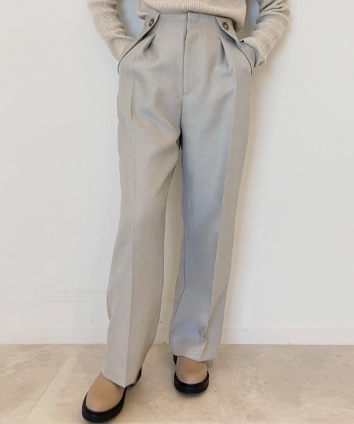 杢感と表面の凸凹感がかわいい素材感を使用した、デザインワイドパンツ。【素材】ツイル目の凸凹感と、オリジナルで作った杢感のカラー配色が特徴的な素材を使用しています。まだ肌寒い時期からでも着用しやすい、しっかりとした肉感なのもポイント◎程よいハリ感がある素材感なので、すっきりとしたシルエットが出るのも特徴的です。【シルエット】ウエスト周りにデザインが入っているので、裾にかけてすとんとしたすっきりシルエット。インしたときにきまるデザインに仕上げています◎【こだわり】春らしさを残しつつ、一枚でスタイリングのスパイスになってくれるデザインパンツに仕上げました。素材感にもこだわり、さらっとしたさりげない凸凹感のある表面が特徴的な素材を採用。マシンウォッシャブル機能つき。※ポケット数:横×2、後ろ(ダミー)×2※七分裏地ありこちらの商品は主に春に着用いただける商品です。モデル情報:身長162cm B83 W60 H84 着用サイズ:38(M)店舗へのお問い合わせ商品番号:N02-64001●製品寸法:38(M):W66~68cm H90cm 股下68cm 前股上32cm 渡り幅31cm 裾幅25cm備考: