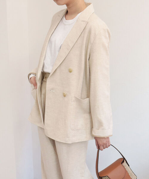◇fredy emue◇ 【2022 SS】 大人カジュアルなスタイリングに導くダブルジャケット ●point ・ラフな雰囲気で着ていただける軽い素材のダブルジャケット ・リラクシーな雰囲気漂うゆるっとしたフォルムが魅力 ・春夏の羽織りアイテムとしておすすめです ・洗える素材でイージーケアがしやすいのも嬉しいポイント ●detail ・ざっくりと開いた襟元と肩落ちしないシルエットが大人な抜け感を演出 ・フロントの大きめなポケットやボタンのデザインもスタイリングのアクセントに ・コーデの主役になるギンガムチェックとベーシックなリネン混の2素材で仕立てました ・同素材のパンツとセットアップで着ていただけます(2-0021-2-29-003 チェック/リネンドビータックパンツ) 透け感:なし 裏地:なし 伸縮性:なし 光沢感:なし 生地の厚さ:普通 洗濯:手洗い可 ●coordinate 同素材のパンツとセットアップで着てトレンド感あるコーディネートが◎ ギンガムや無地のモノトーンな配色は、カラーのインナーを入れたり小物でアクセントをつけるのがおすすめです。 ●お取扱い上のご注意● *商品を長くご愛用していただきたいため、アテンションタグを必ずご確認の上、着用又はお取り扱い下さい。 *店頭及び屋外での撮影画像は、光の当たり具合で色味が違って見える場合があります。商品の色味は、スタジオ撮影の画像をご参照下さい。 *商品画像に関しては出来る限り忠実に表示出来るよう努めておりますが、お客様がご利用のモニターの設定及び特性により、実際の商品と比較し色味に若干の誤差が生じる場合があります。 *画像の商品はサンプルとなりますので実際の商品と仕様、加工、サイズが若干異なる場合がございます。 ◇商品のお気に入り登録◇ 【お気に入りに登録 ♡マークをクリック!】を是非ご活用ください。 再入荷の通知や、ラスト1点の通知、セールの通知がいち早く届きます。 ◇ブランドのお気に入り登録◇ 新商品や再入荷など、いち早くブランドのお得情報が届きます。